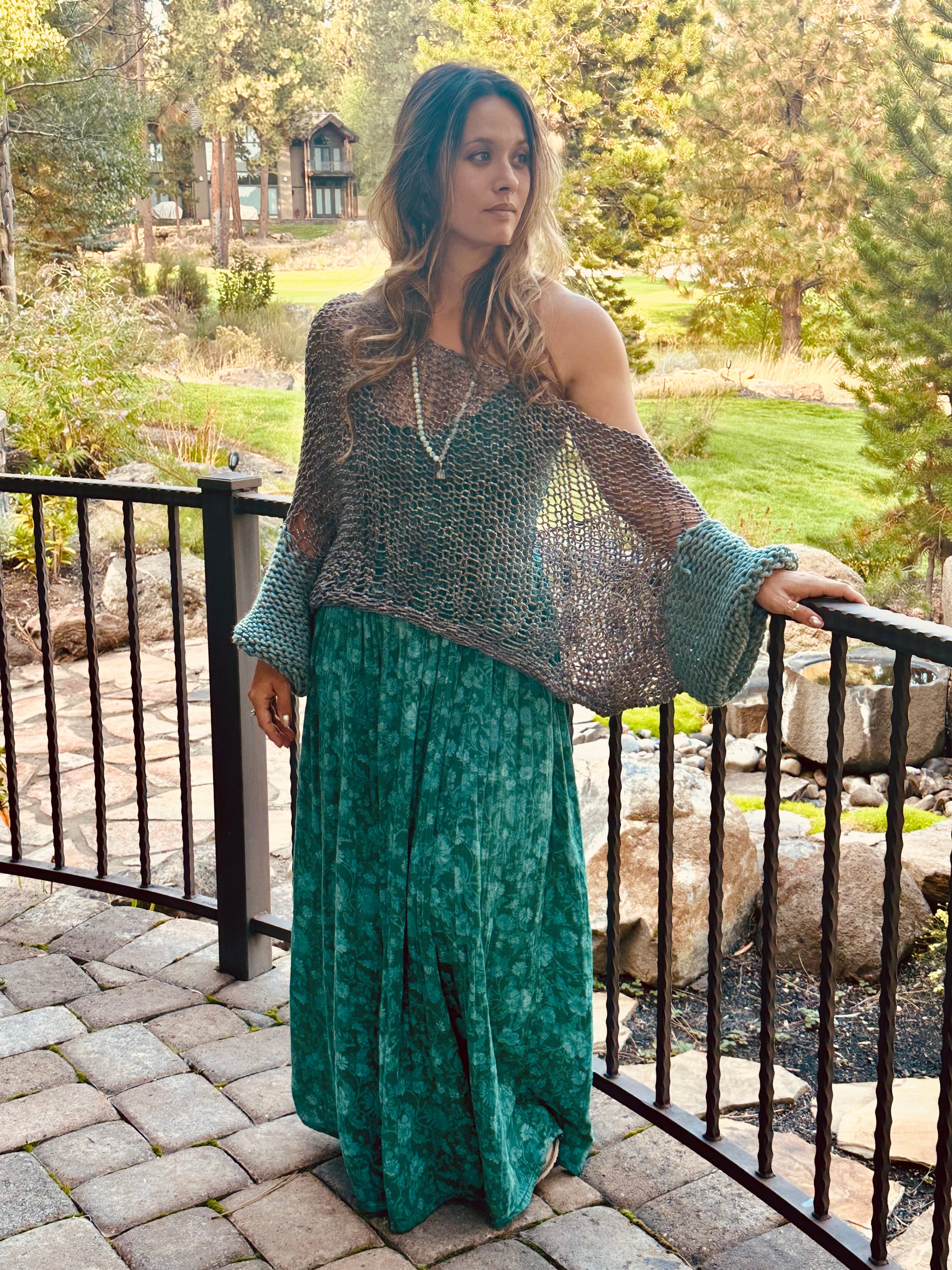 The Delaney Sweater is that effortless, throw-on-and-go piece you’ll reach for again and again. With chunky teal knit sleeves and a heather grey body, it blends color and texture in the most inviting way. Its loose, easy fit makes it perfect for layering — cozy enough for home, yet effortlessly chic for stepping out.
